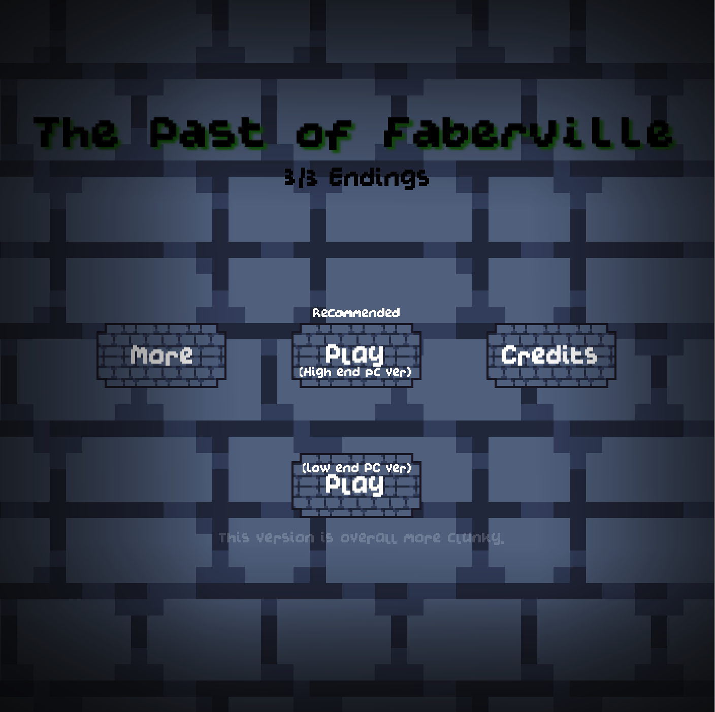 The Past of Faberville is an RPG where you go around in a big open world, slaying monsters, saving towns, or leaving them behind. Because of its big open world, it MIGHT run bad on low end devices. Please do not let this affect the score.